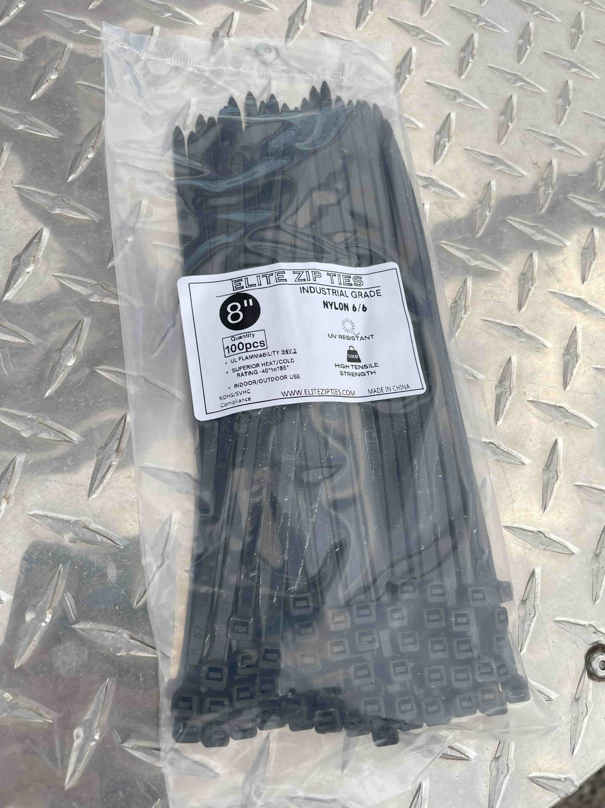 - 8" and 12" Zip Ties: 50lb rating for heavy-duty tasks where extra strength is crucial.